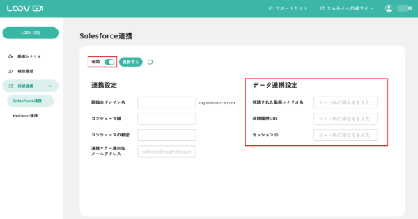 視聴者が LOOV フォームに回答した際に、フォームの回答内容だけではなく、LOOV の視聴情報を追加で Salesforce リードへ連携することができます。