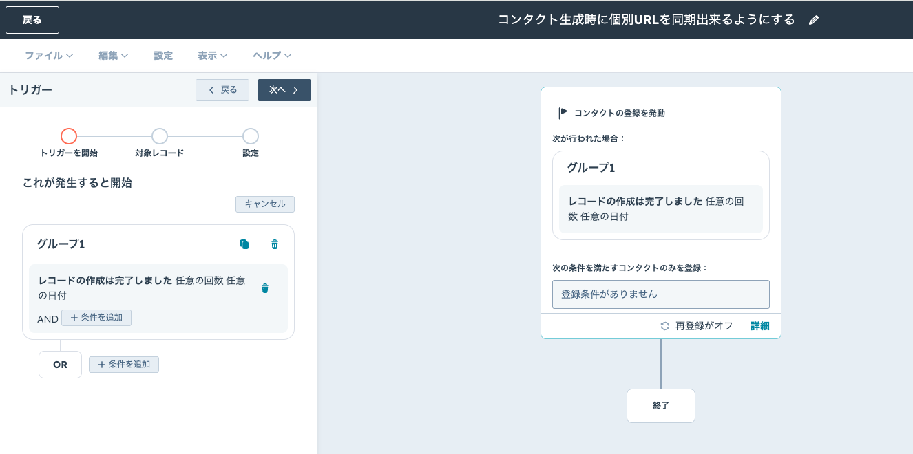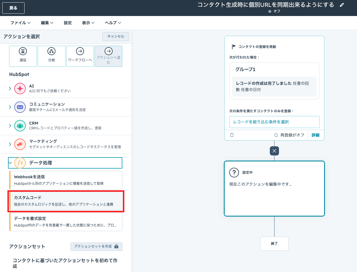 HubSpot上でコンタクトが作成されたタイミングをトリガーに、