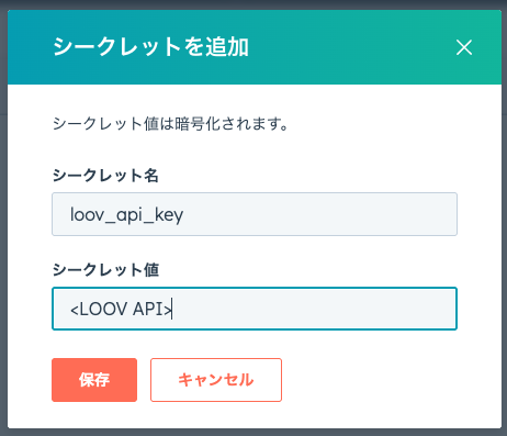 loov_api_keyシークレット値:初期設定00で発行したLOOV APIキー