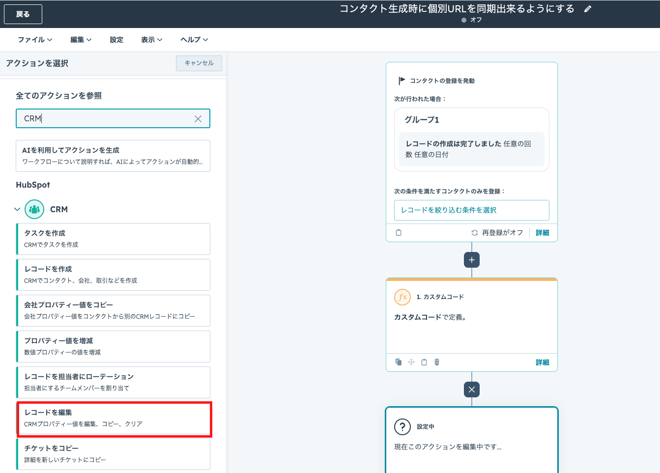 ② 「CRM」→「レコードを編集」を選択