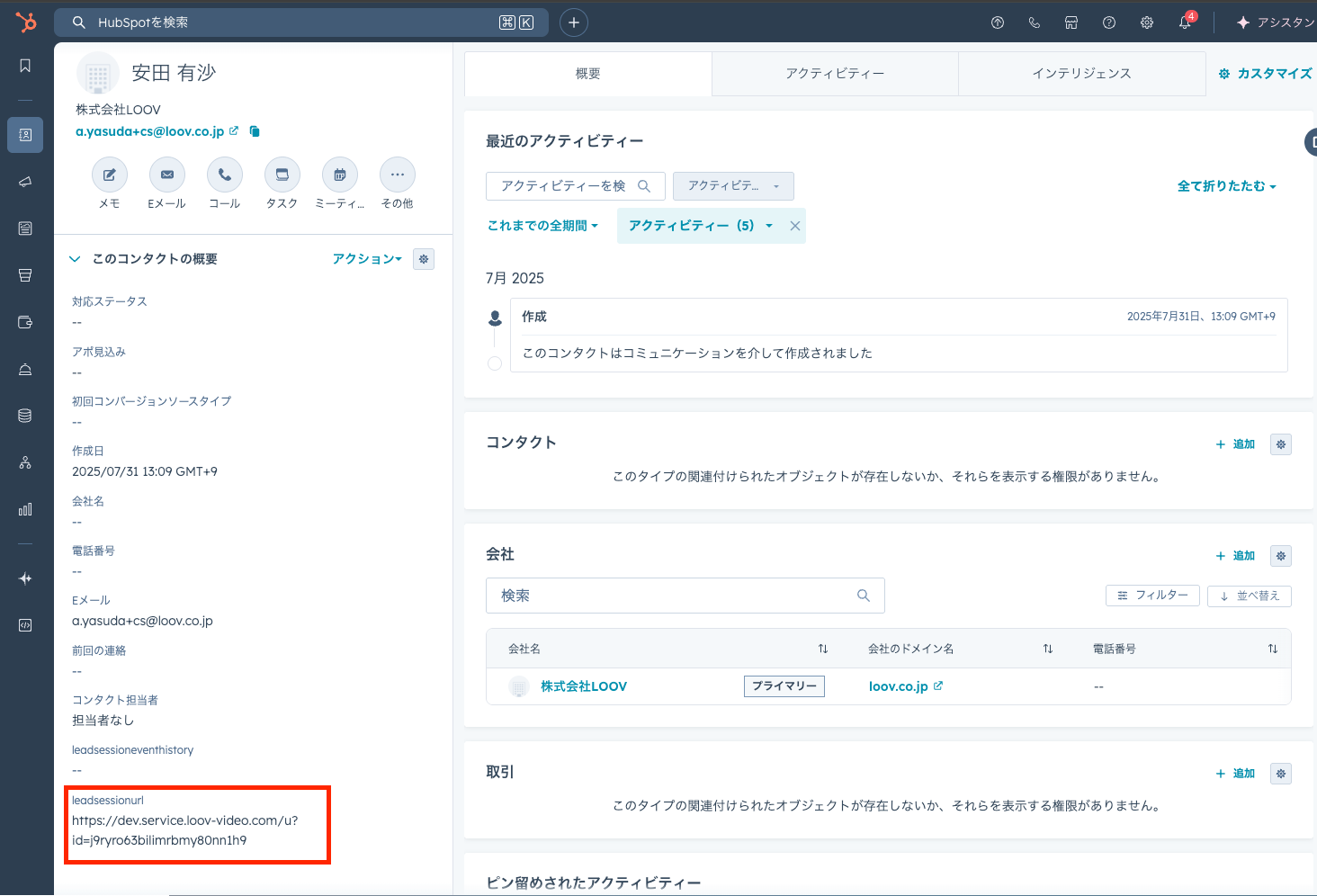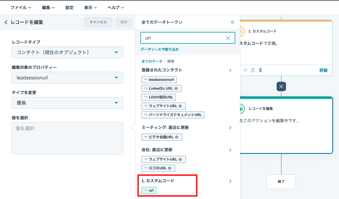 HubSpotのプロパティに視聴URLを自動保存
