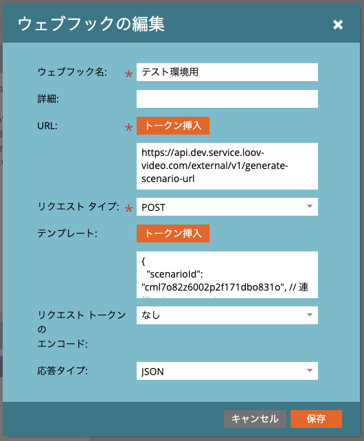 LOOV外部APIが返す「url」を「01. 個別URLの同期設定」で設定した値を設定します。