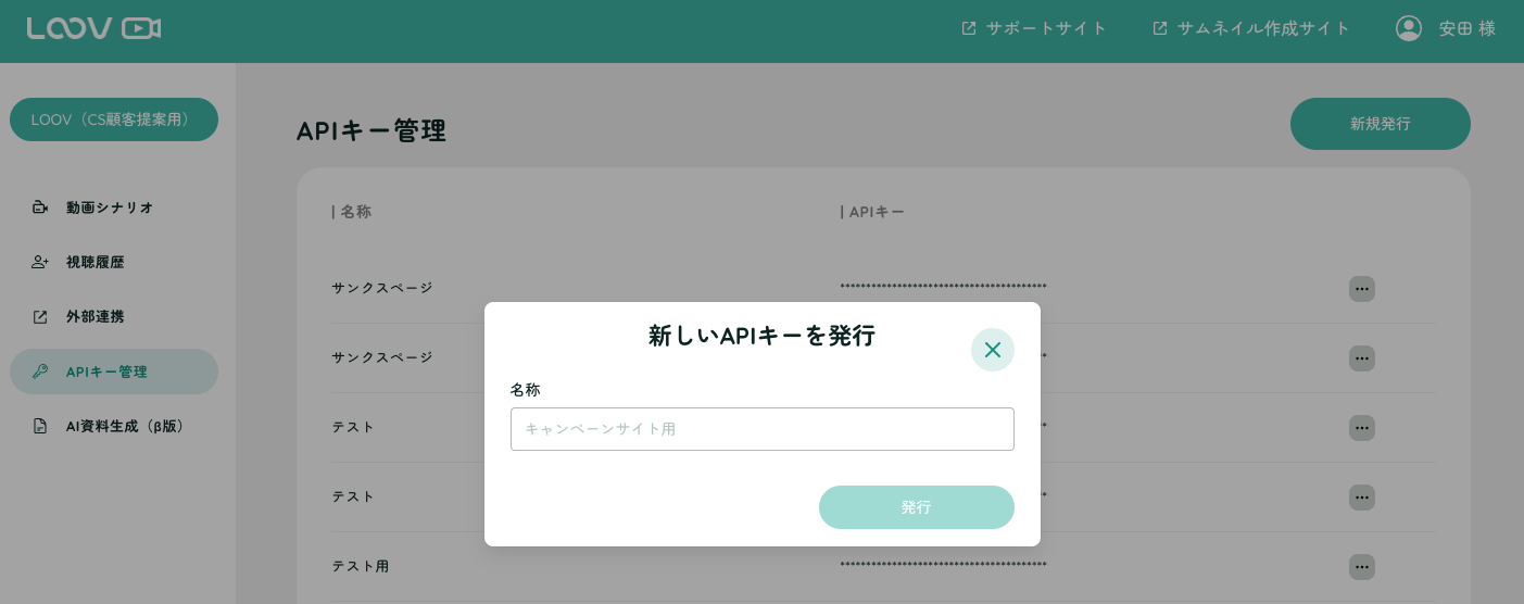 「APIキー管理」設定にてAPIキーを発行します