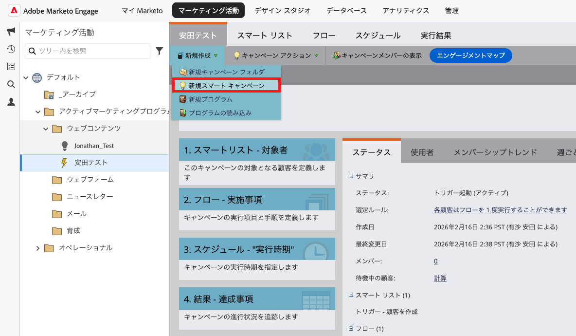 マーケティング活動 > 「新規スマートキャンペーン」をクリック