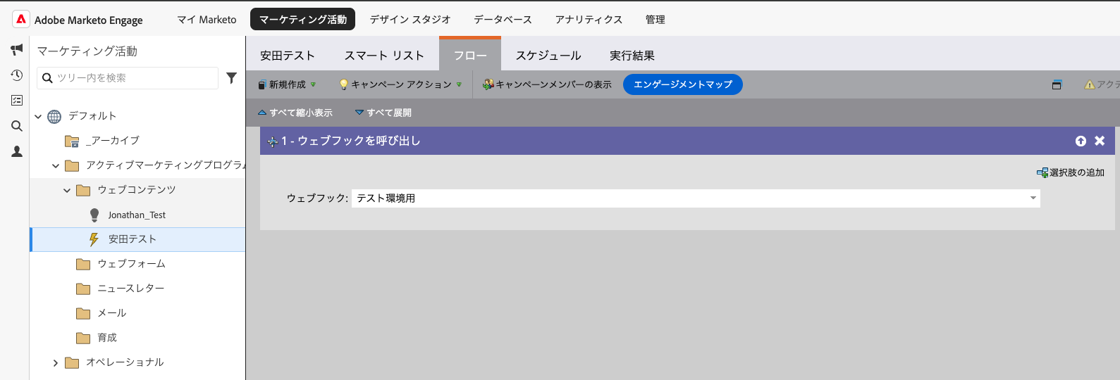 フロー > 「ウェブフックを呼び出し」プルダウンより、作成したウェブフックを選択