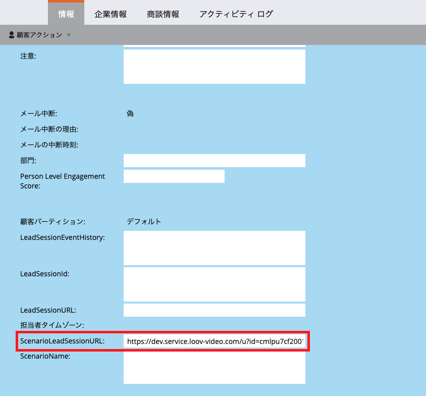 視聴履歴が動画を視聴すると「LeadSessionEventHistory」に視聴履歴URLが自動生成されます。