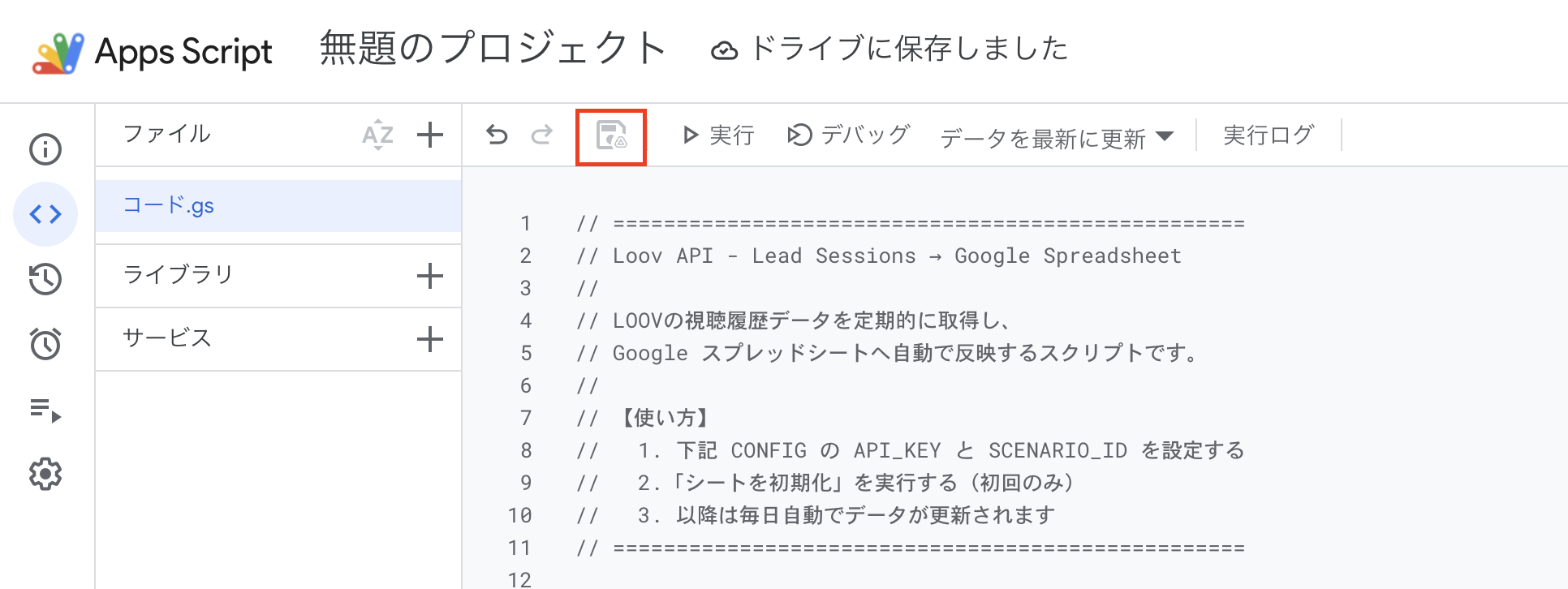 SHEET_NAME | シートのタブ名 | "LOOV視聴履歴" | "動画データ一覧" など好きな名前に変えられます。 |