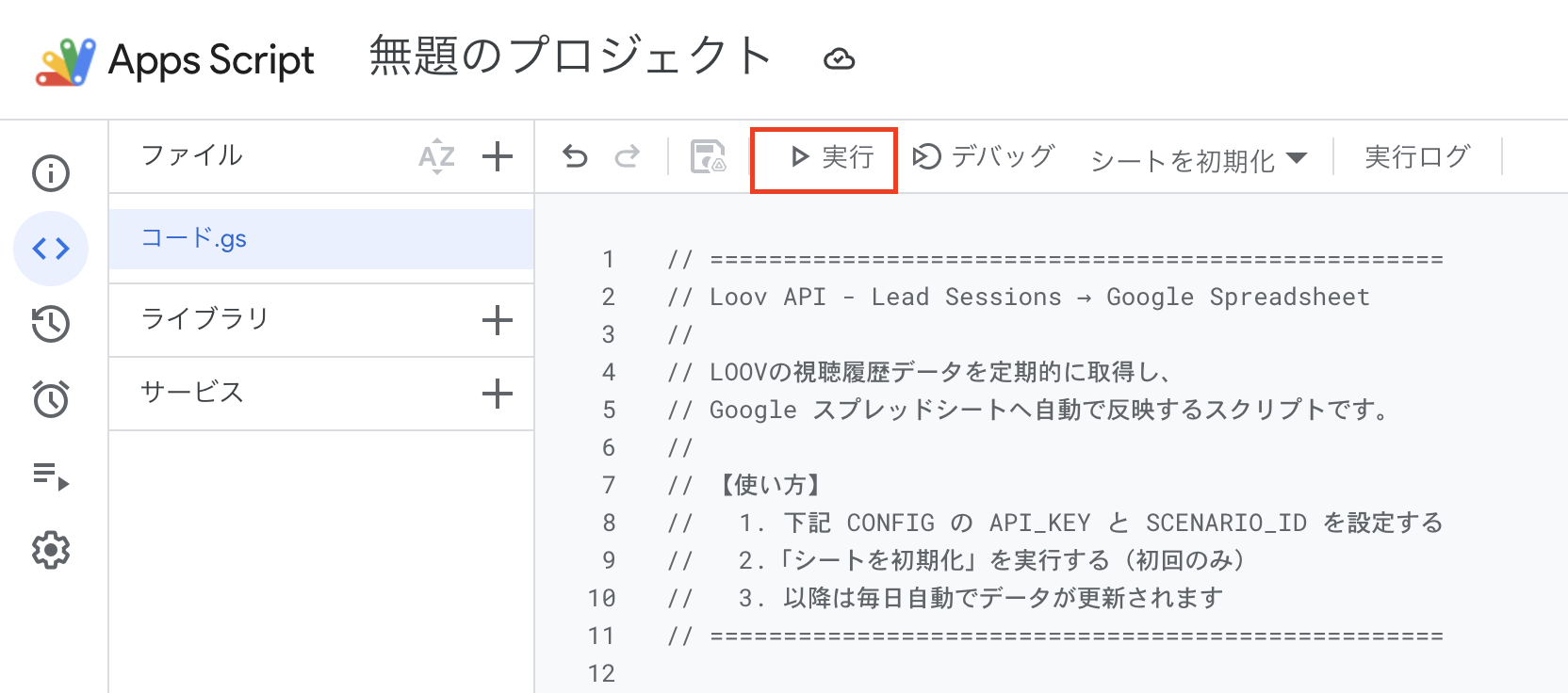 [実行(再生ボタン▶)] をクリックします。