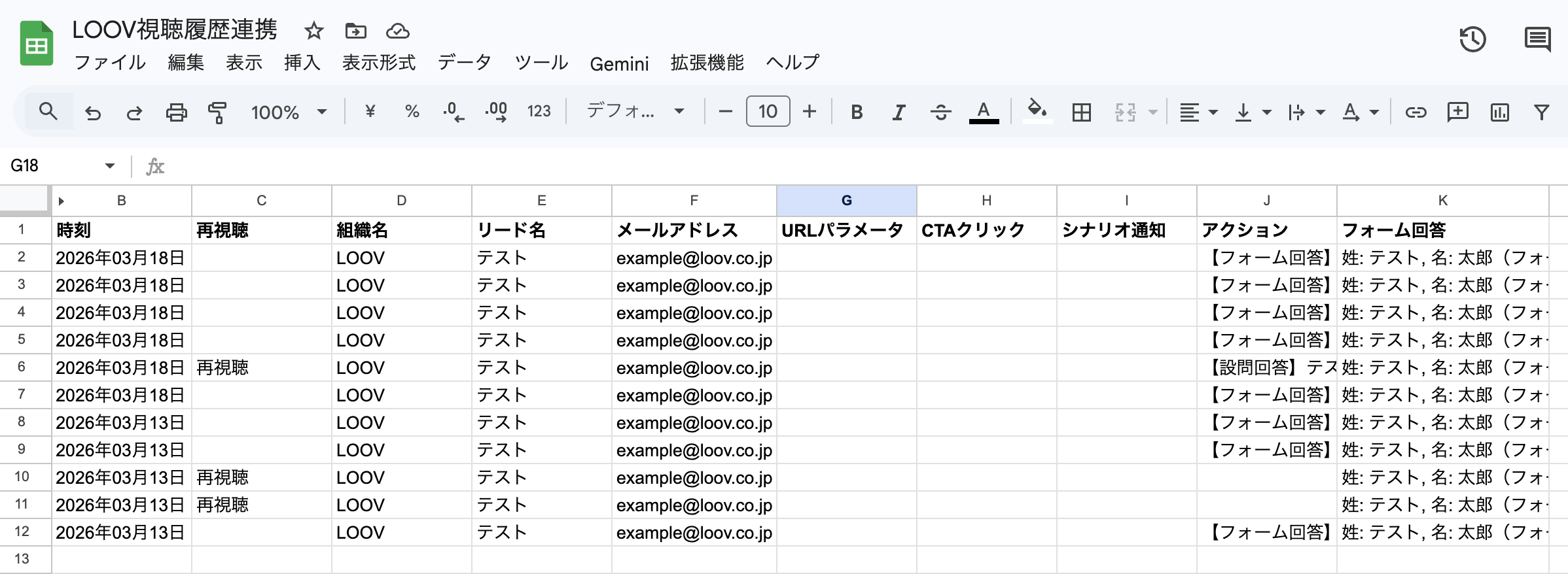 全自動反映:LOOVの視聴履歴データがスプレッドシートに自動で貯まります。