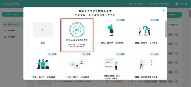 本STEPでは、サービス情報と資料をアップロードするだけで、動画構成・セリフ案・録画用資料が自動生成される「AIシナリオ自動生成」による手順をご案内しております。