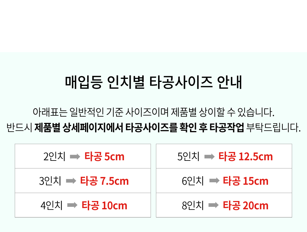 ๊ธฐ์กด์ ์ฌ์ฉํ๋ ์ ํ์ด ์๋ค๋ฉด ๊ตฌ๋งค ์ ๊ตฌ๋ฉ(ํ๊ณต)์ฌ์ด์ฆ๋ฅผ ํํ ํ์ธ ํ ๊ตฌ๋งคํ์ ์ผ ํฉ๋๋ค.