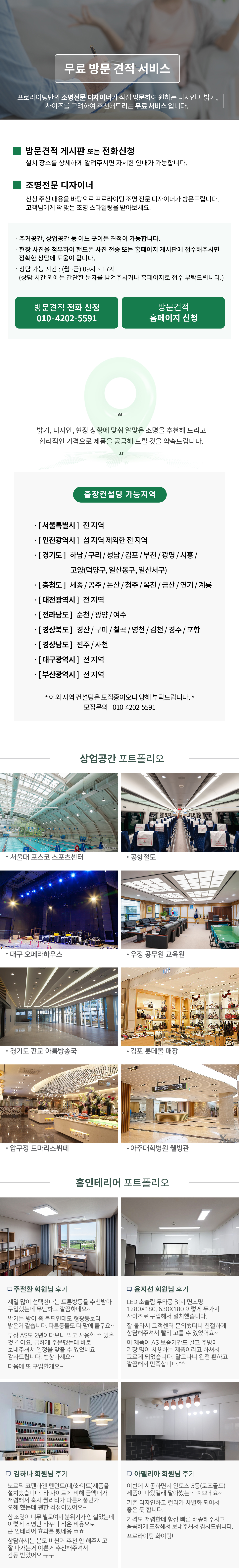 ๋ฌด๋ฃ ๋ฐฉ๋ฌธ ๊ฒฌ์ ์๋น์ค๋ ์ง ์ ์ฒด ์กฐ๋ช ์ (๊ฑฐ์ค,๋ฐฉ,์ฃผ๋ฐฉ,ํ์ฅ์ค,ํ๊ด,๋ฒ ๋๋ค ๋ชจ๋) ๊ตฌ๋งคํ์ค ๋ ๋ฌด๋ฃ๋ก ๊ฐ๋ฅํ์๋ฉฐ ์ผ๋ถ ์กฐ๋ช ๋ง ๊ต์ฒด์ ์ ๋ฃ๋ก ์ถ์ฅ๋น๊ฐ ์ฒญ๊ตฌ๋ฉ๋๋ค.