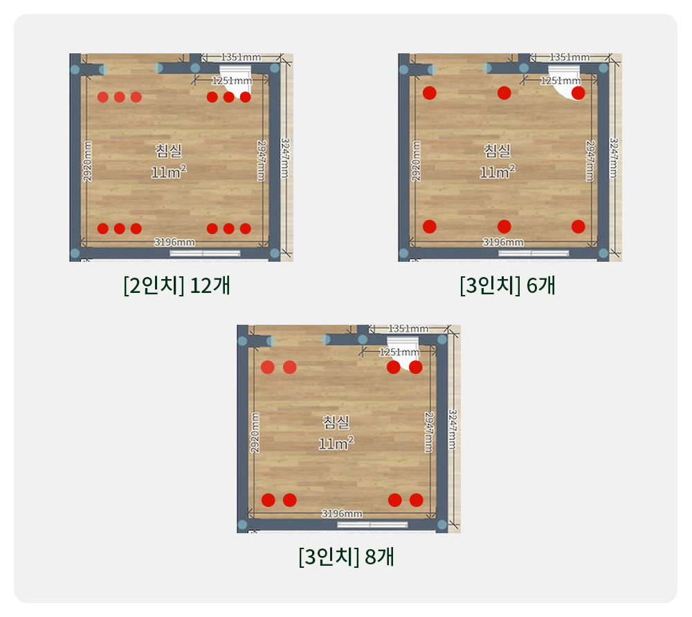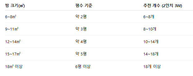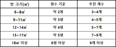 ๋ฉด์ ์ ๋ฐ๋ผ ๋ฐฉ์ ์ค์น ํ ๋งค์ ๋ฑ ๊ฐฏ์๋ฅผ ์ถ์ฒ ๋๋ฆฌ๊ฒ ์ต๋๋ค.