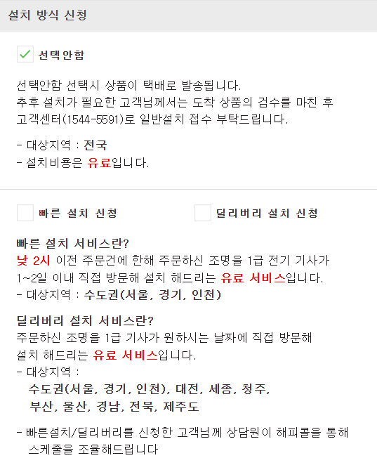 ์ผ๋ฐ์ค์น - ์ ํ์ํจ (์ ํ ํ๋ฐฐ ๋ฐ์ก) โ ๋์ฐฉ ํ ์ค์น ์ ์ฒญ