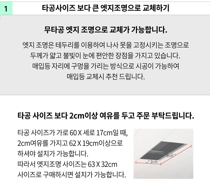 A. ์์ค๋ฑ์ด ์ง์ฌ๊ฐ ๋งค์ ๋ฑ์ผ๋ก ์ค์น ๋์ด์๋ค๋ฉด ํ๊ณต ์ฌ์ด์ฆ๋ณด๋ค ํฐ ์ฃ์ง์กฐ๋ช ์ผ๋ก ๊ต์ฒด ๋๋ ๋ฆฌํผ๋จํ๋ก ๋ด๋ถ๋ง ๊ต์ฒดํ๋ ๋ฐฉ๋ฒ์ด ์์ต๋๋ค. (์๋ ์ด๋ฏธ์ง ์ฐธ์กฐ)