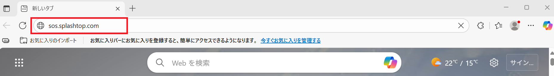 不具合が発生しているデバイスにて、WEBブラウザを開き、「sos.splashtop.com」と検索します。