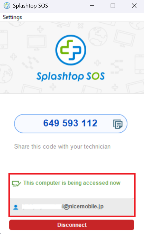 実行後に表示される9桁のコードを担当者へ伝え、そのまま画面を触らずにお待ちください。