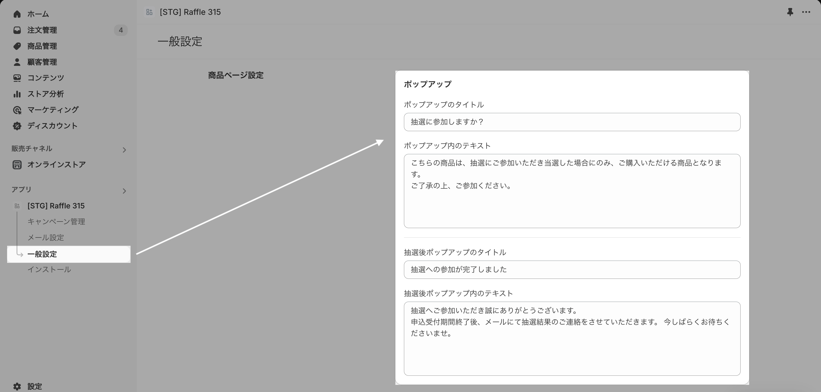 This feature allows you to edit the popup text displayed when customers apply for a raffle.