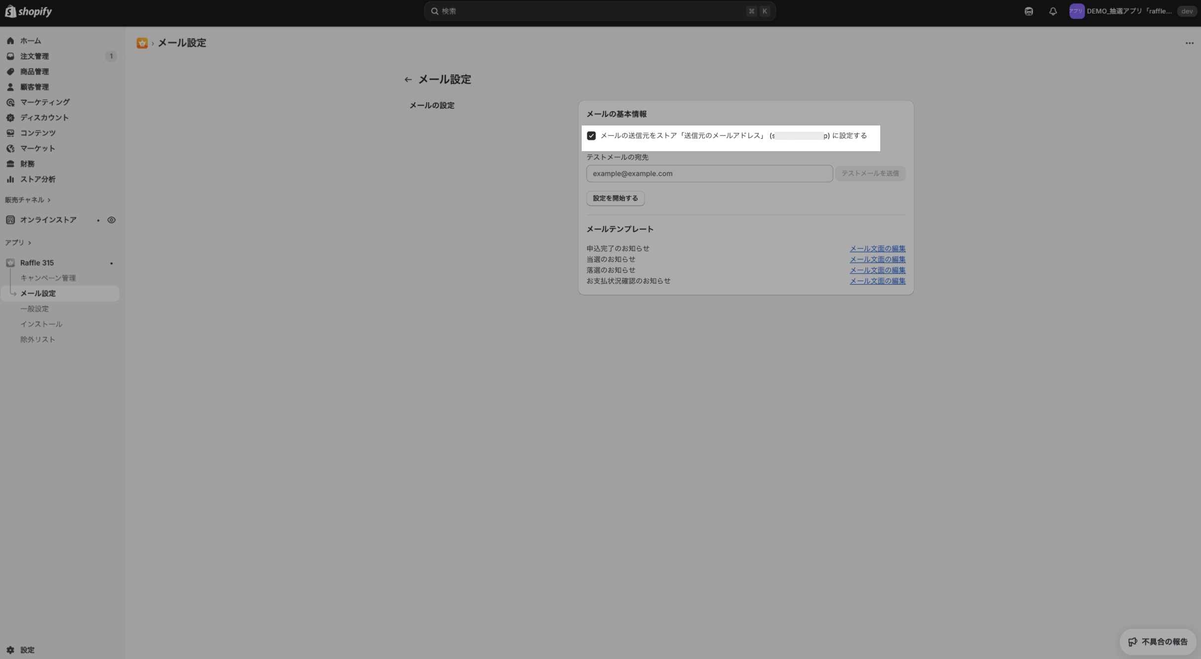 メールの送信元をストア「送信元のメールアドレス」にするをONにする