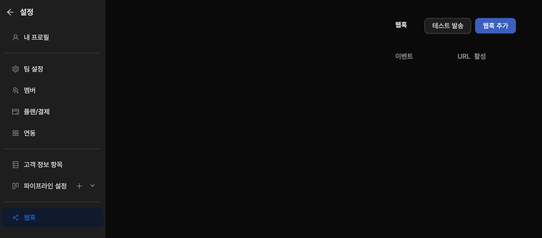 [웹훅 설정 화면]