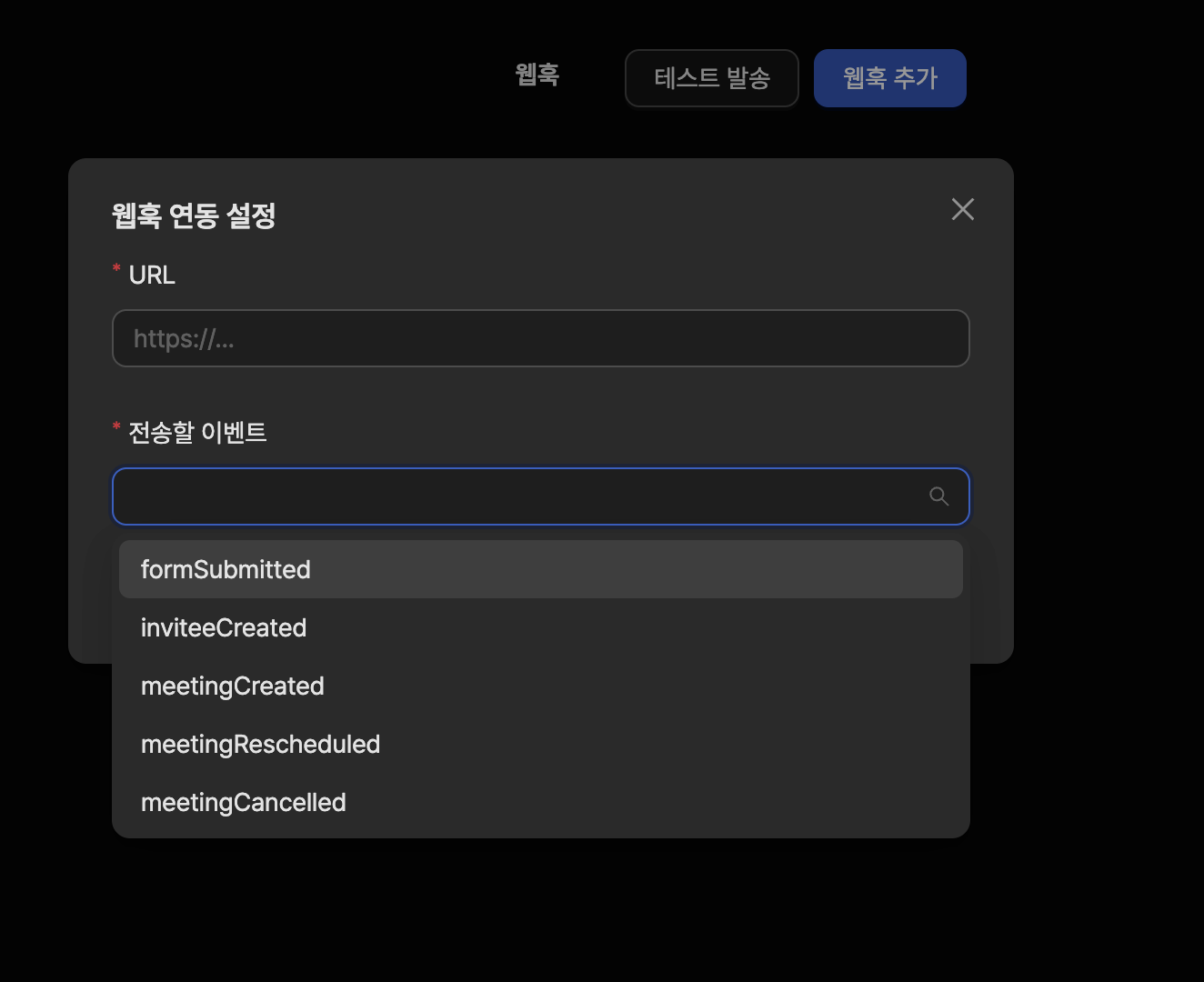 [웹훅 테스트 발송 모달 창]