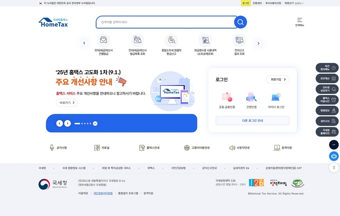국세청 홈택스에 접속해 로그인을 진행해 주세요. (인증서 로그인 필수)