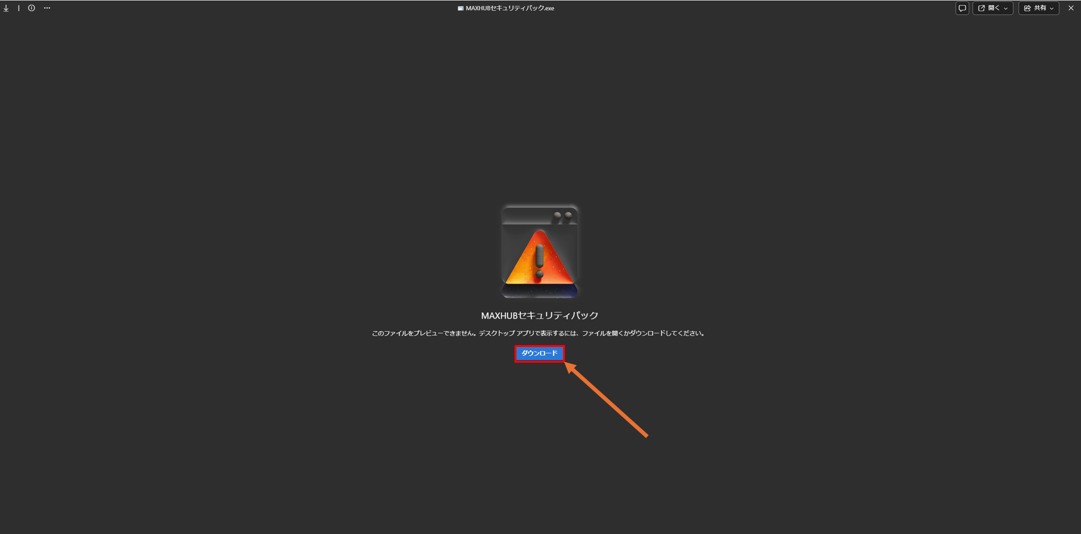 1.下記のリンクを開き、「MAXHUBセキュリティパック.exe」をダウンロードします。