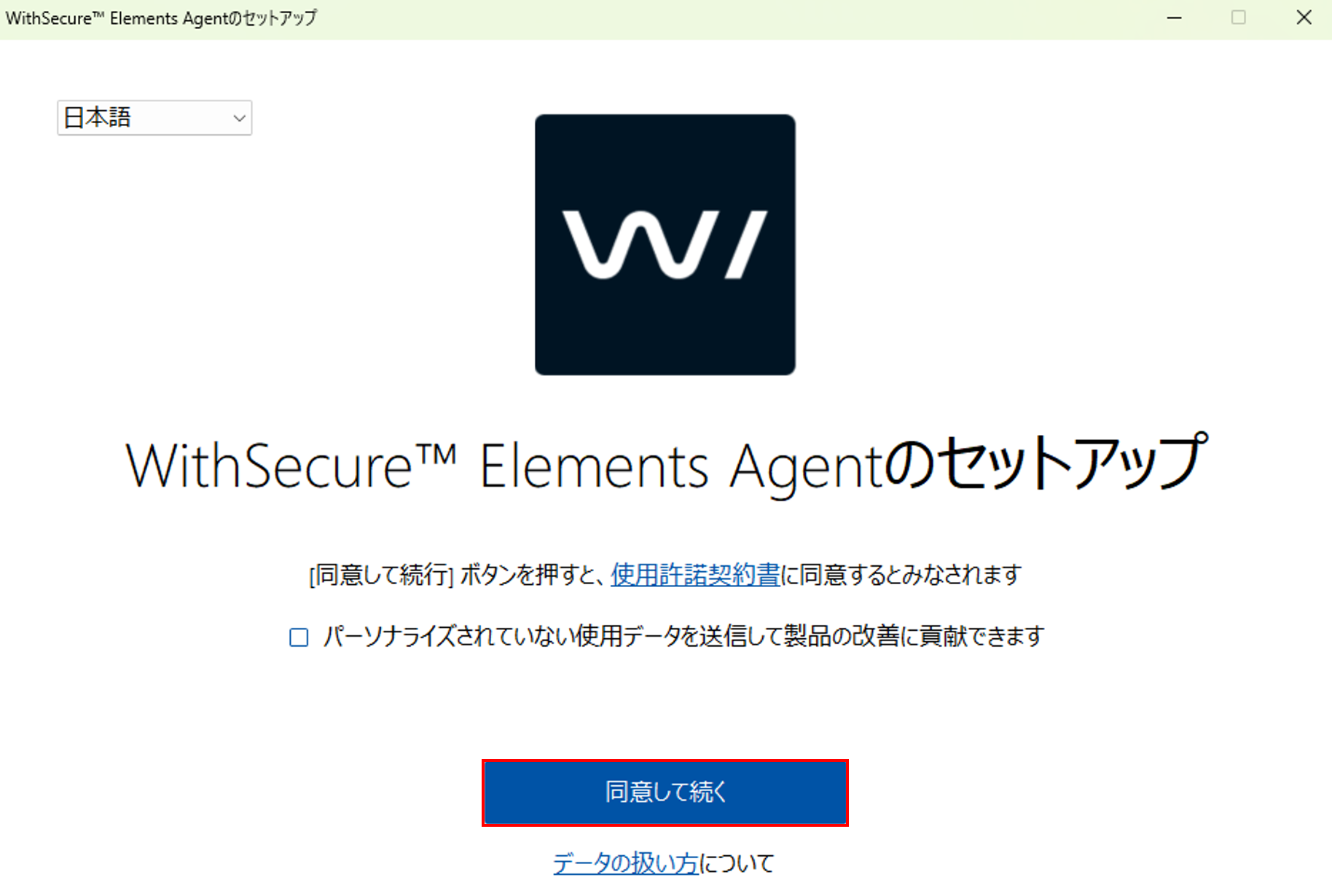 3.「同意して続く」を押します。