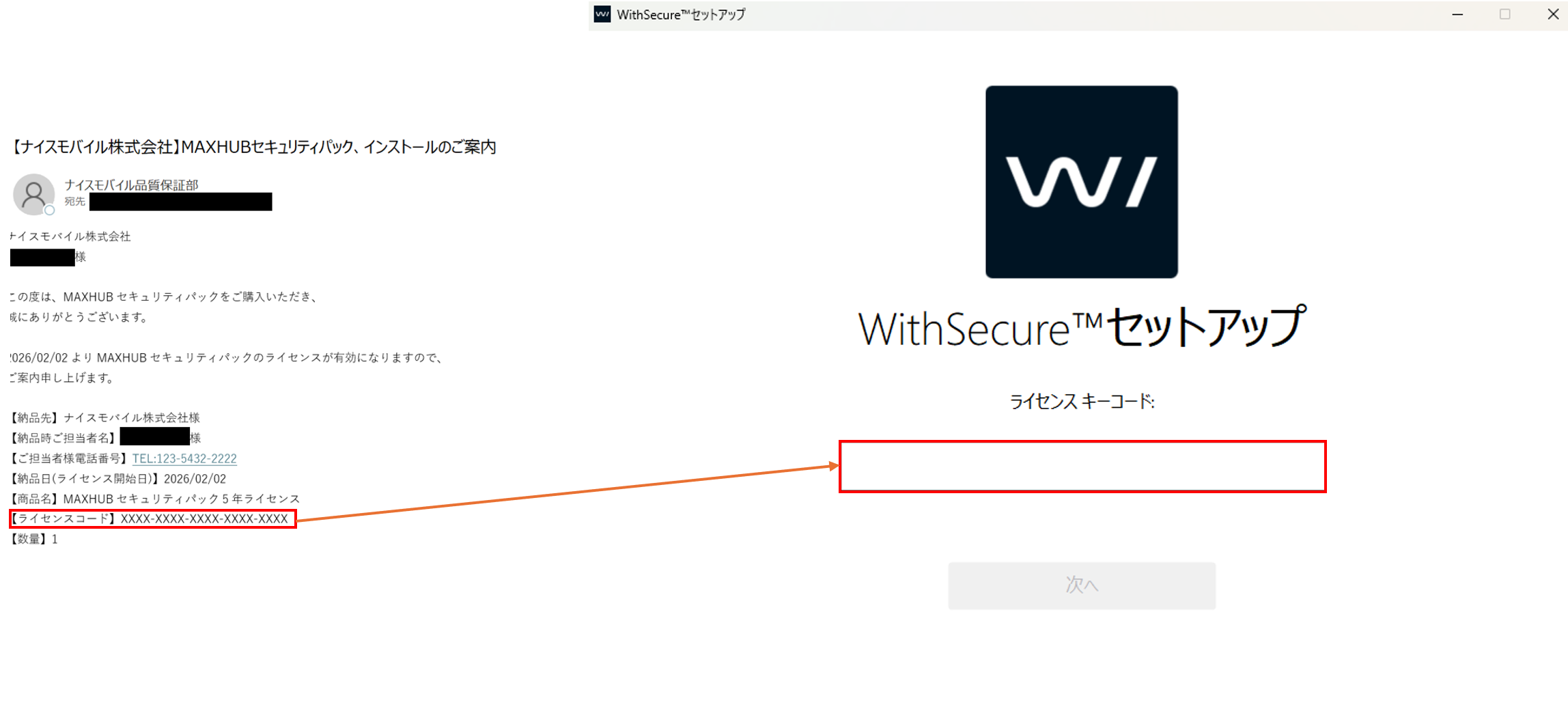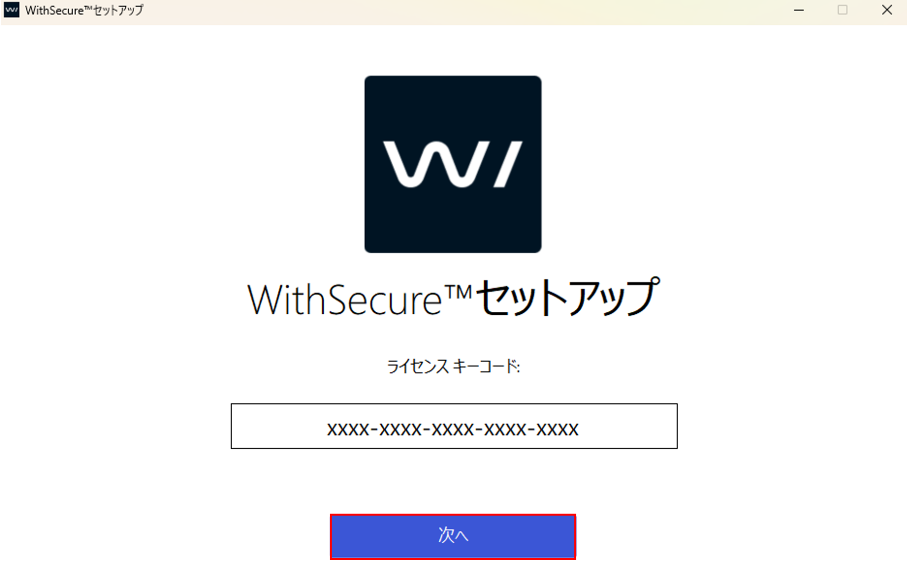 5.ライセンスコードを入力後、「次へ」を押します。