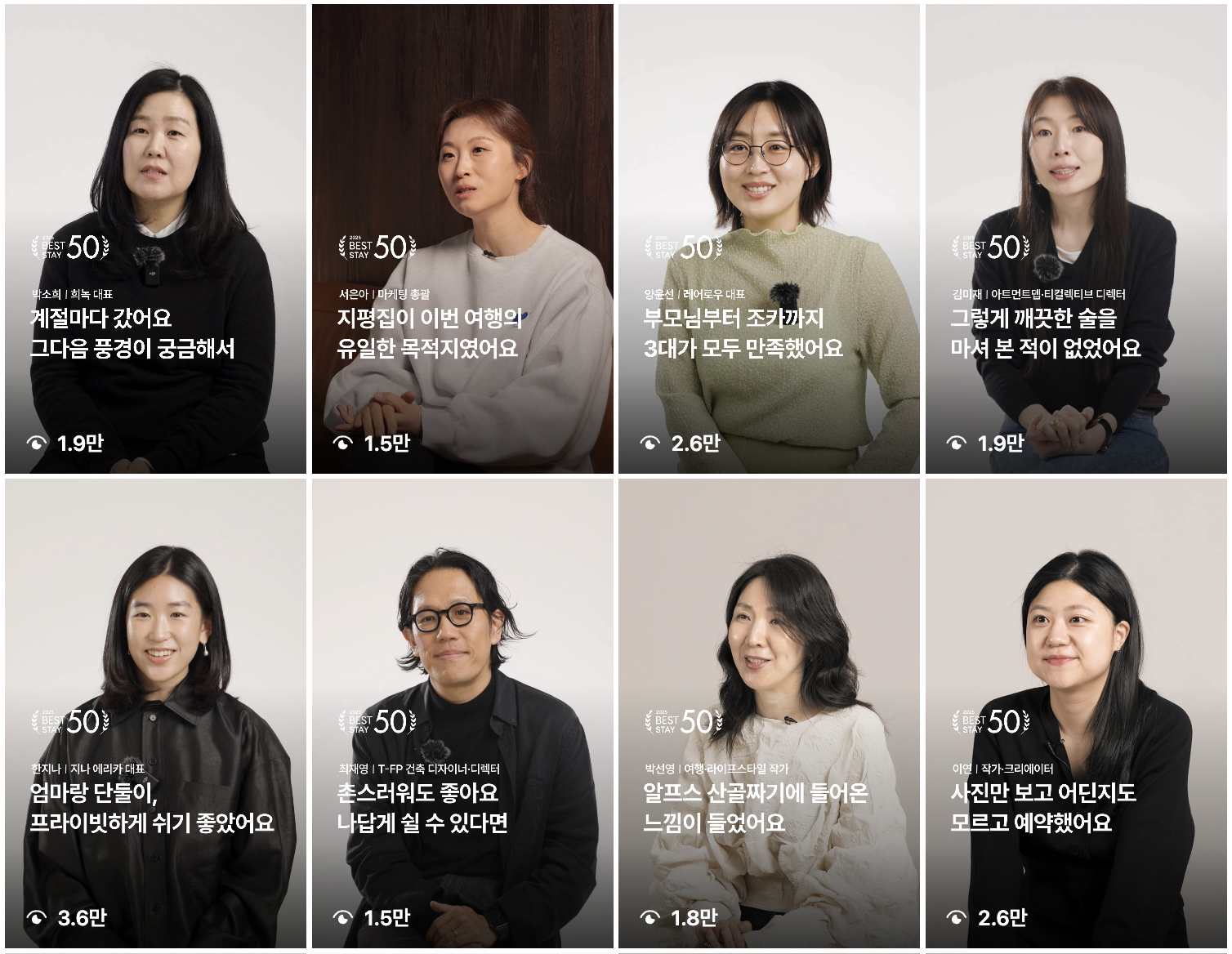 ‘베스트 스테이 50’ 캠페인은 ‘안목 있는 여행자 50인’이 가장 좋았던 스테이를 꼽는 캠페인이다. 역시 브랜딩 전문가의 기획이라는 생각이 드는데, 어떻게 하게 됐나.