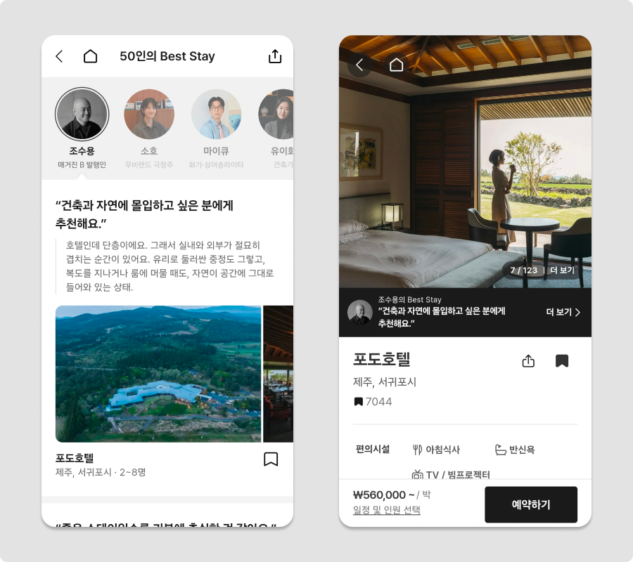 이 생각을 평소에 안고 있으니까 서은아 상무님과 대화했을 때 바로 아이디어가 연결됐다. ‘베스트 스테이 50’ 캠페인을 하면 이제 스테이폴리오에 한옥 말고도 여러 종류의 스테이가 있다는 걸 충분히 보여줄 수 있을 거라고 생각했다.