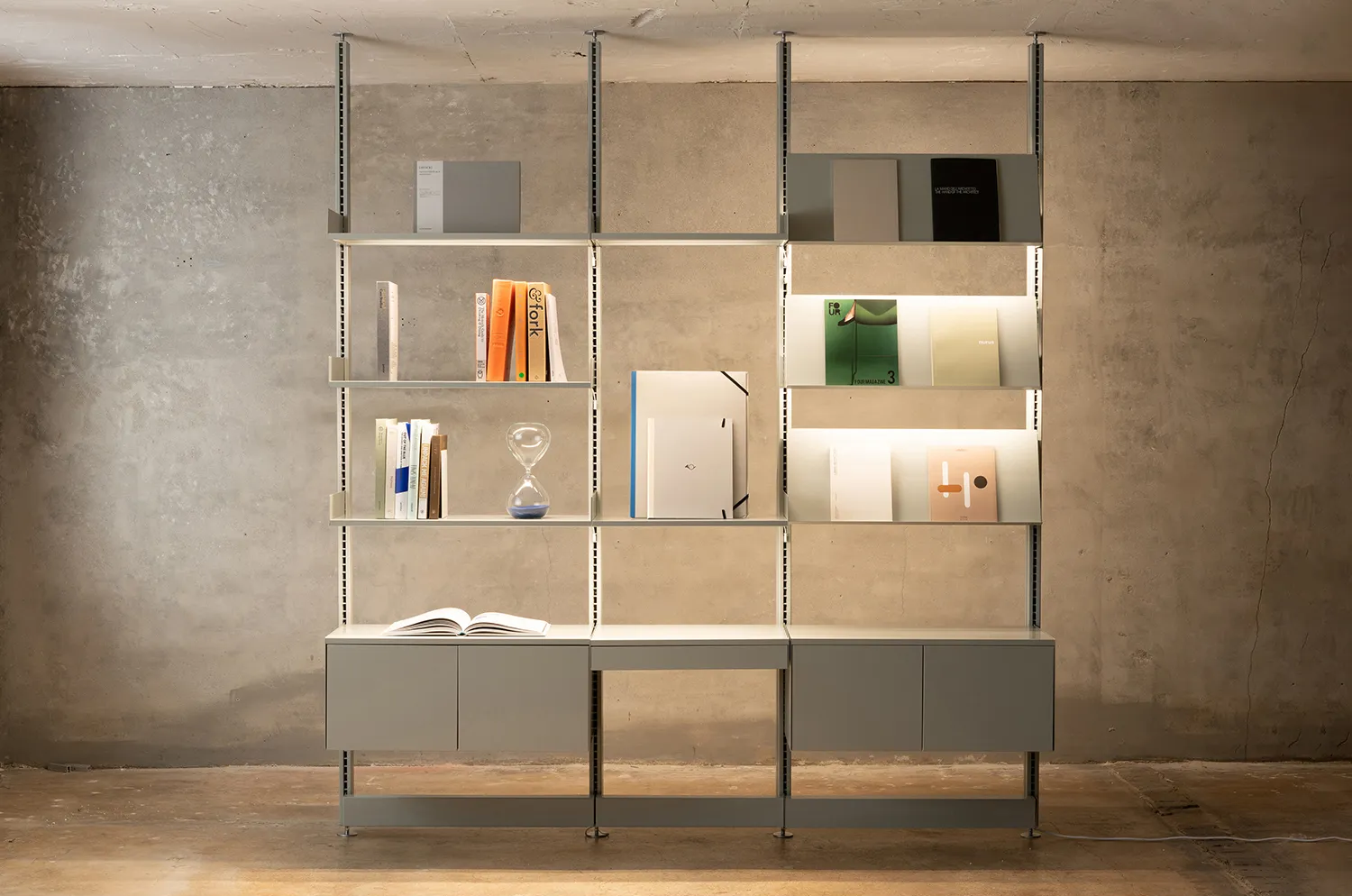 다만 배우는 건 많아도 ‘우리 것’이 없었다. 계속 자체 제품을 만들어야 한다는 생각을 하다가 나온 게 ‘시스템 000’이라는 조명 시스템 선반이다. 모듈 선반의 기본 소양인 튼튼함, 이동성은 물론이고 조명 기능까지 갖추고 있어서 제가 생각해도 잘 만들어진 제품이다. 처음 출시됐을 때부터 지금까지 베스트셀러인 제품이다.