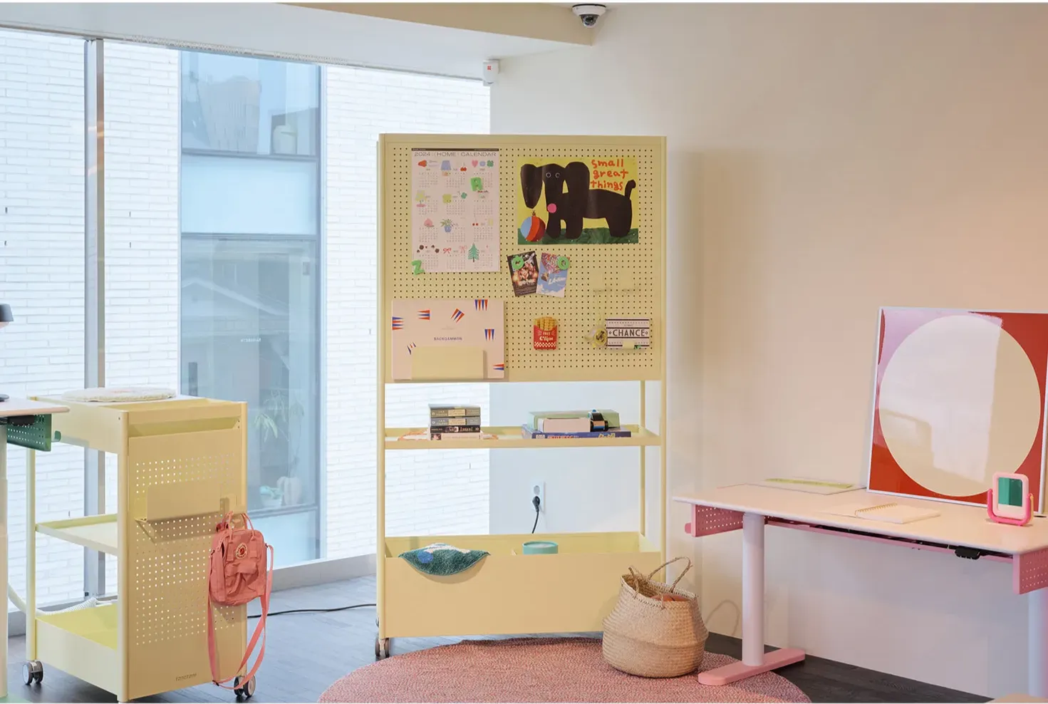 그래서 더욱 삶에 솔루션을 주는 제품을 만들려고 노력했다. 단순한 테이블이 아니라 멀티탭이 숨겨진 공간이 있는 테이블이라든가, 수납과 충전 기능이 탑재된 트롤리라든가, 전면은 화이트보드고 뒷면은 타공판인데 수납도 되는 파티션이라든가.