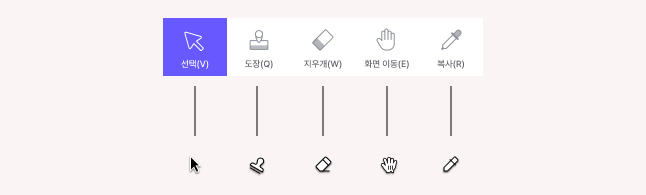 우측 오브젝트 패널에서 오브젝트를 선택하면 도장 툴로 자동 전환됩니다.