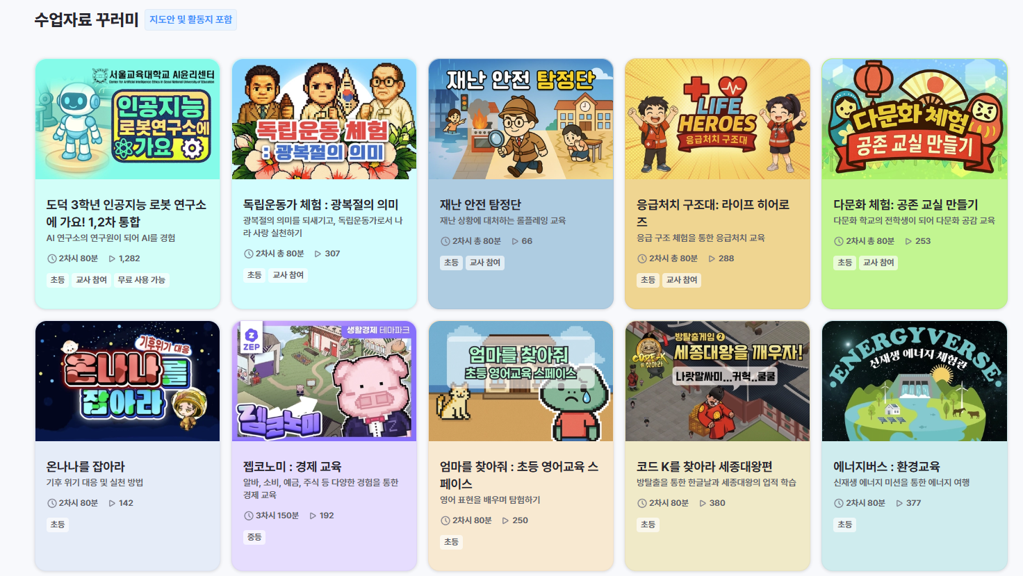 수업 자료 꾸러미에는 계기교육, 교과교육 시 활용 가능한 다양한 스페이스와 학습 자료들이 업로드 되어있습니다.