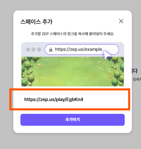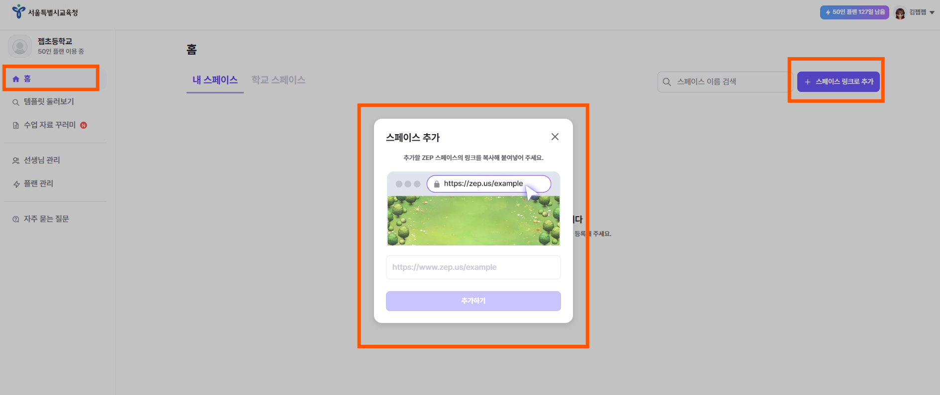 스페이스 링크를 복사하여 학생들에게 전달하면, 해당 링크를 통해 스페이스에 접속할 수 있습니다.