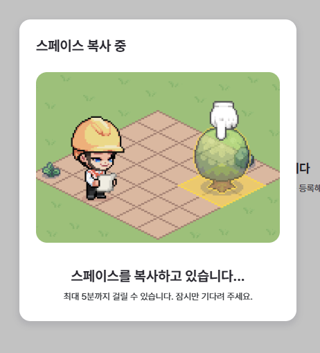 만약 3분 이상 경과했음에도 계속 로딩중이라면, 새로고침 후 내 스페이스를 확인해주세요. 이미 복사가 완료되었을 수 있습니다.
