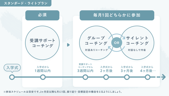 スタンダード・ライトプランの方は入学式から約1ヶ月後に、受講サポートコーチングに参加しましょう。