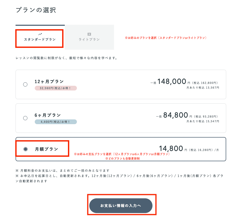 本記事は「ライト・スタンダードプラン」にご受講中の方向けの内容です。 ご受講中のプランはこちらからご確認ください。