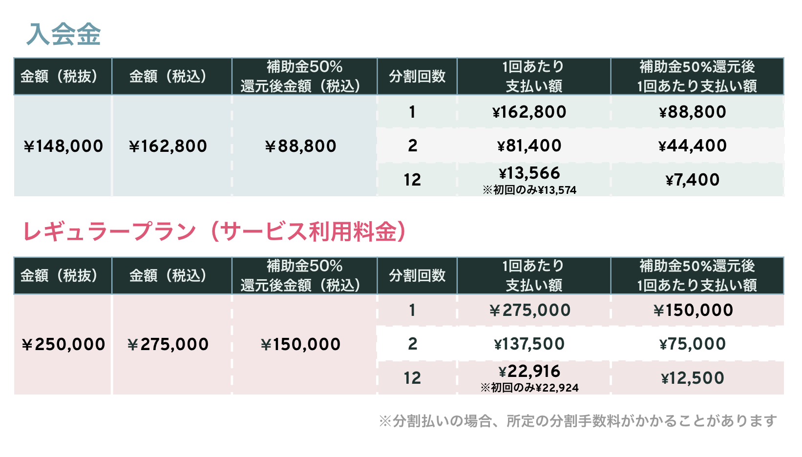 料金は入会・プラン変更のタイミングで異なりますので、ご自身の入会日・プラン変更日(課金更新日)をご確認のうえ以下の画像をご参照ください。