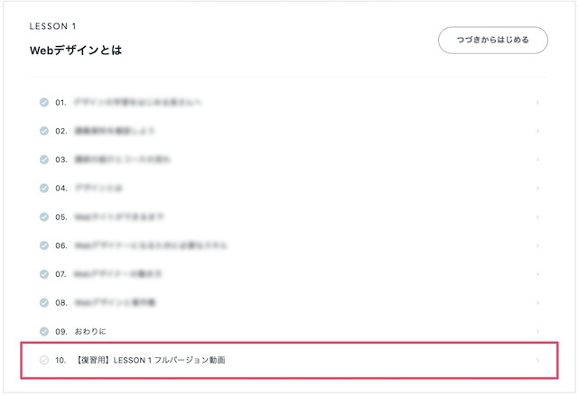 各レッスンの末尾に、【復習用】フルバージョン動画をご用意しております。