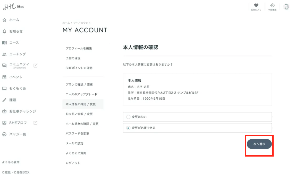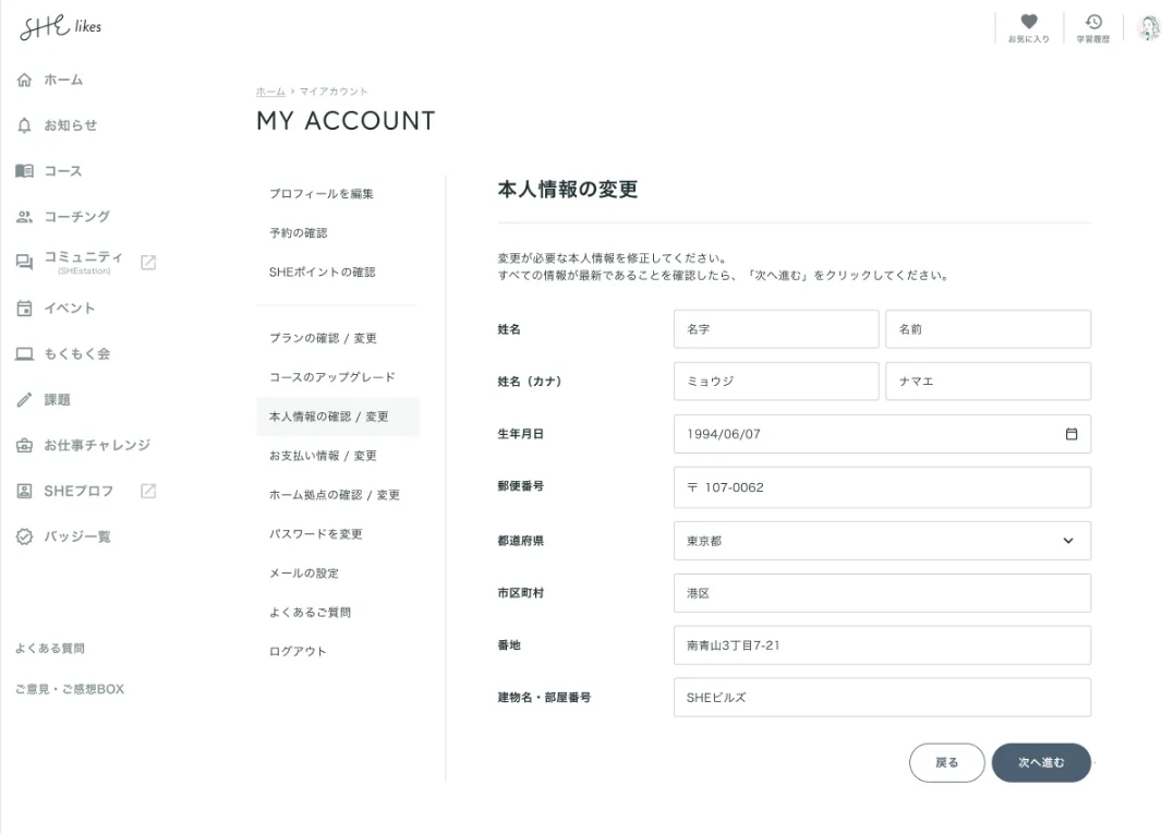 ※本FAQはSHElikesの登録情報の変更についてのFAQです。