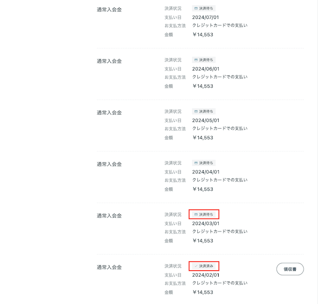 お支払い状況のご確認はマイページより可能です。