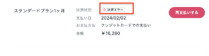 「再支払いする」ボタンから再支払いのお手続きをお願いいたします