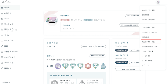②お支払い情報/変更をクリックしてください