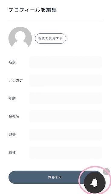 プロフィールページにアクセスしても、「LINE ID連携のポップアップ」や、「右下のベル型のマーク」が表示されていない場合はLINE連携が完了しております。