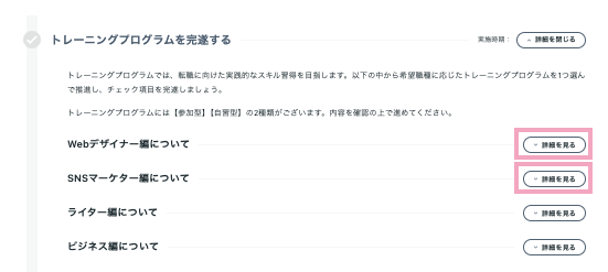 ※トレーニングプログラム【参加型(Webデザイナー編・SNSマーケター編)】の課題は、コースの課題や実技試験とは異なります。