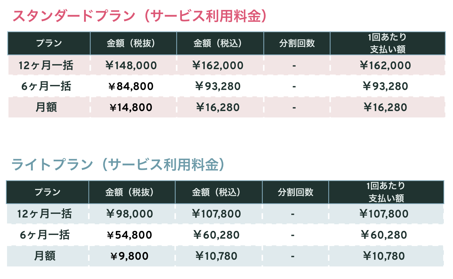ライトプラン・スタンダードプランの料金についてご案内いたします。
