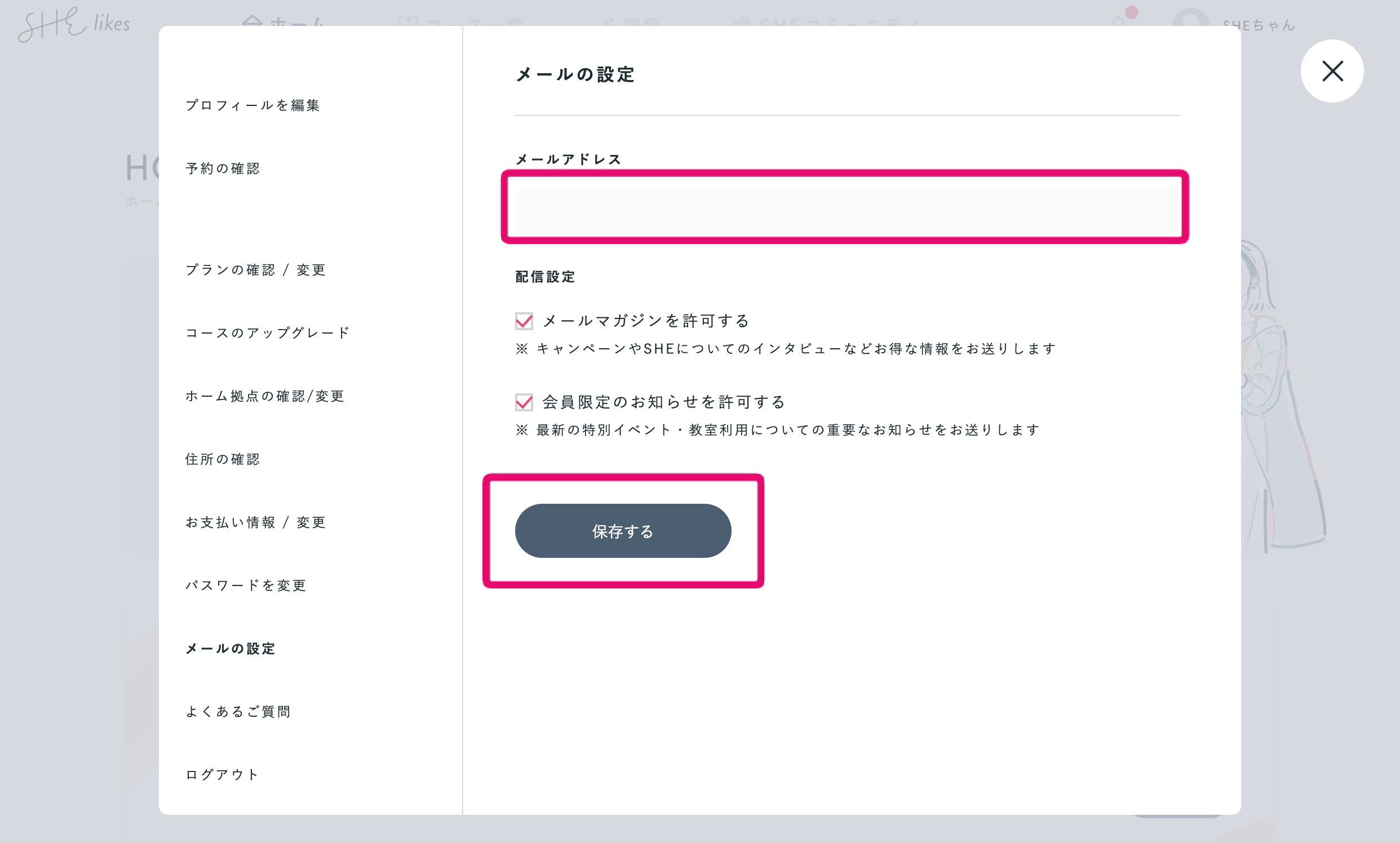 メールマガジンにてキャンペーンやSHEについてのインタビューなどお得な情報大切な情報を多く発信しております。 配信停止後、メールでのお知らせはなくなりますので、ご了承ください。