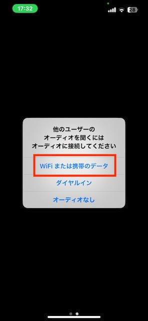 ③オーディオ選択画面にて、「WiFiまたは携帯のデータ」を選択